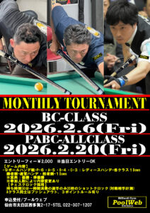 2月マンスリー:BCクラス2月6日(金)・オールクラス2月20日(金)開催【20:00開始】